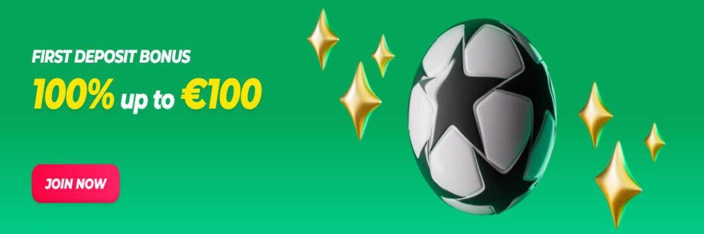 Greatwin provides a 100% match on the first deposit up to €100 for sports betting. Deposit at least €20 and meet the 5x wagering requirement on odds of 1.40 or higher.