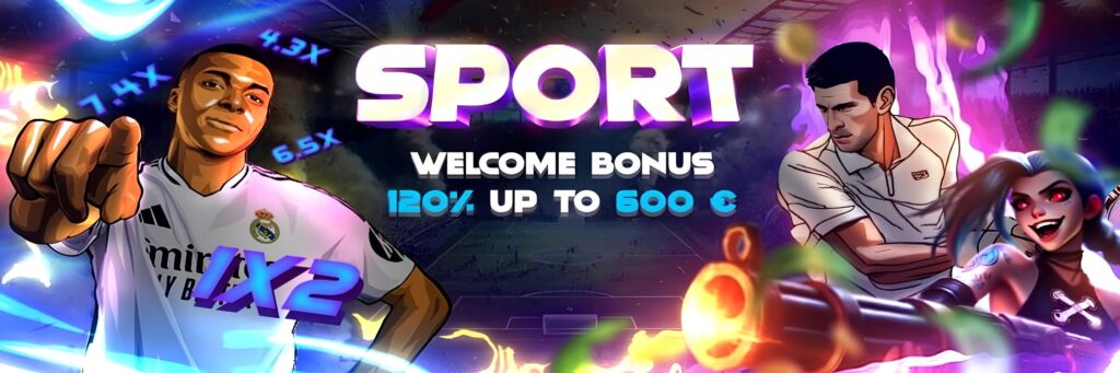 To activate the welcome bonus, make a minimum deposit of at least €20 to get a 120% Sports Welcome Bonus up to €600 or a 170% Crypto Deposit Bonus up to €1,000.