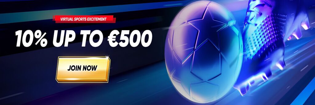 Virtual sports fans can grab a 10% cashback up to €500 as a free bet by wagering €200 or more. Bet it on virtual sports within 30 days; winnings require a 3x wager to cash out.